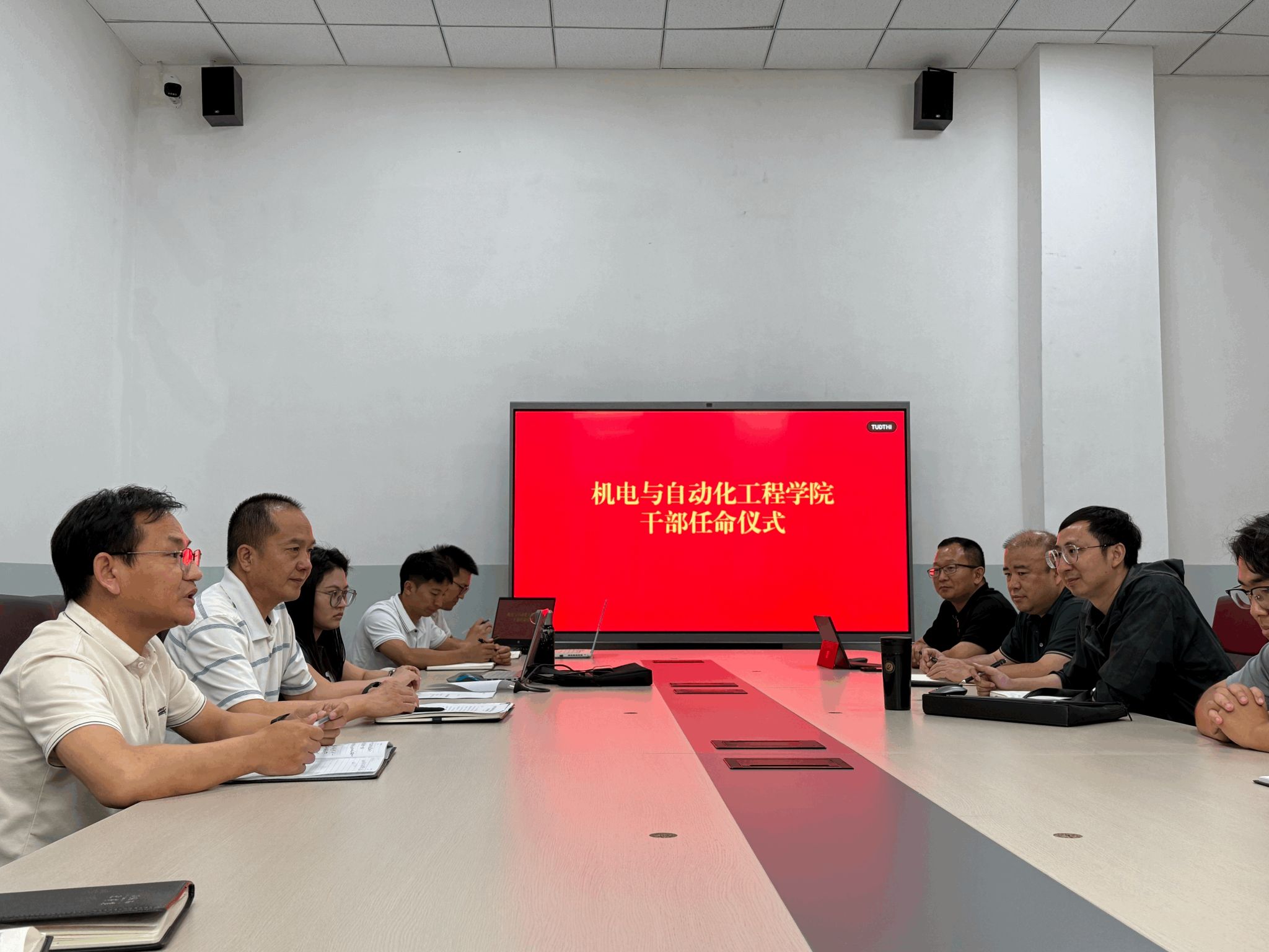 2025年7月10日,机电与自动化工程学院在A1-A-106会议室隆重举行干部任命仪式,宣布李小号同志担任学院院长一职。会议由校党委委员蒋学玮、组织部马小琴同志及学院全体教师出席。会议议程如下:一、宣布任命决定会议伊始,马小琴同志代表学校党委宣读任命文件,正式任命李小号同志为机电与自动化工程学院院长。蒋学玮委员对李小号同志的工作经历和突出贡献给予高度评价,强调此次任命是学校党委经过慎重考虑作出的决定,希望全院教师全力支持新院长的工作,...