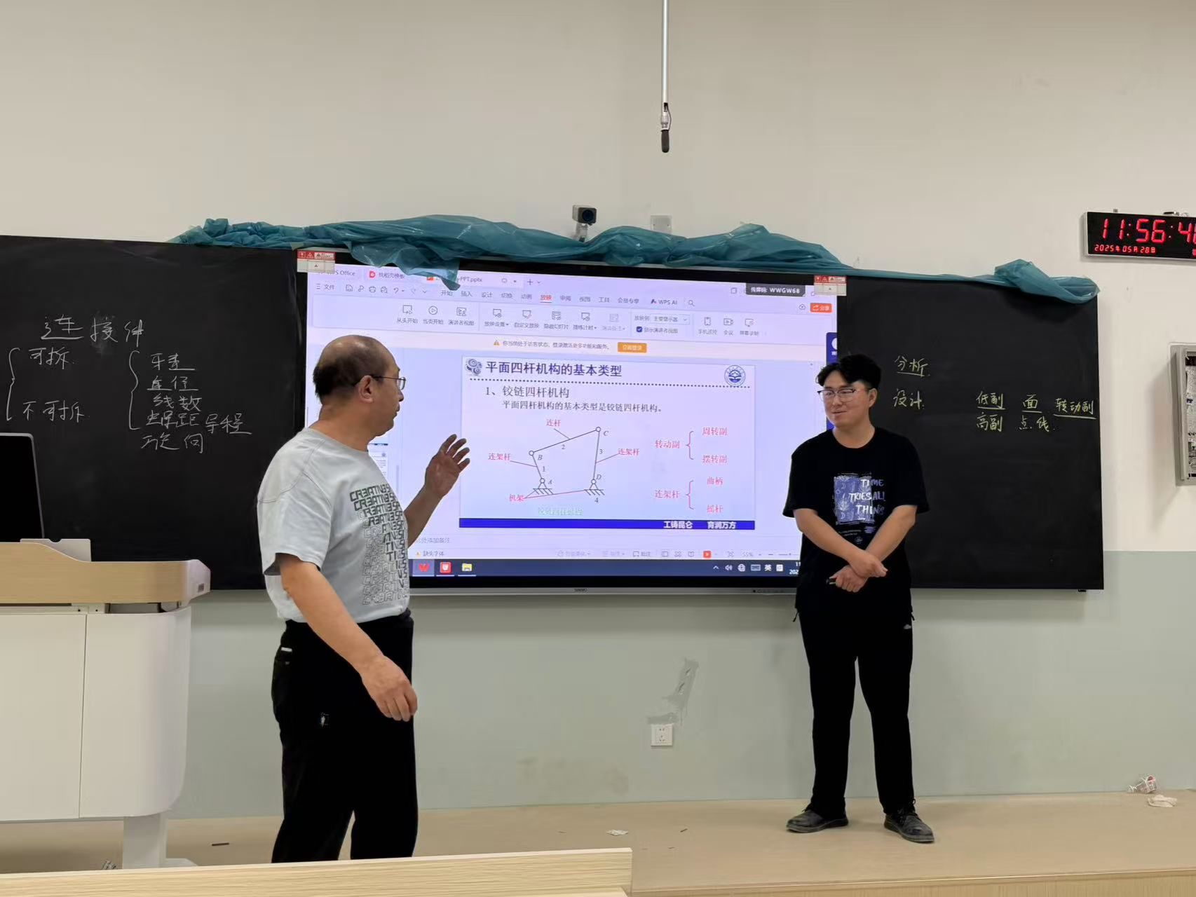 张文智老师通过动态演示讲解连杆机构的工作原理,知识点覆盖面较广,部分内容有待深挖。钱老师建议借鉴精品课件设计,提炼核心知识点,避免信息过载;同时需调整语音语调,增强课堂感染力,并引导学生自主思考。