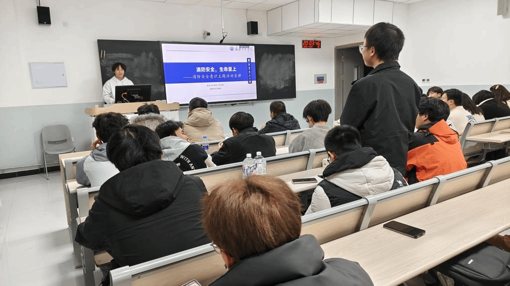 与会学生积极互动讨论,讨论,各班班委代表表示将以此次宣讲为契机,带头落实“人走断电”等安全要求,在班级内组织开展消防安全知识分享会,对宿舍进行安全隐患排查,重点清理违规电器,共同营造“人人讲安全、事事讲安全、时时讲安全”的校园安全文化氛围。活动结束后,各班级迅速行动,召开消防安全专题班会,班主任与班委带领同学们重温宣讲核心内容,再次强调宿舍用电安全规范,对危险行为进行警示提醒。